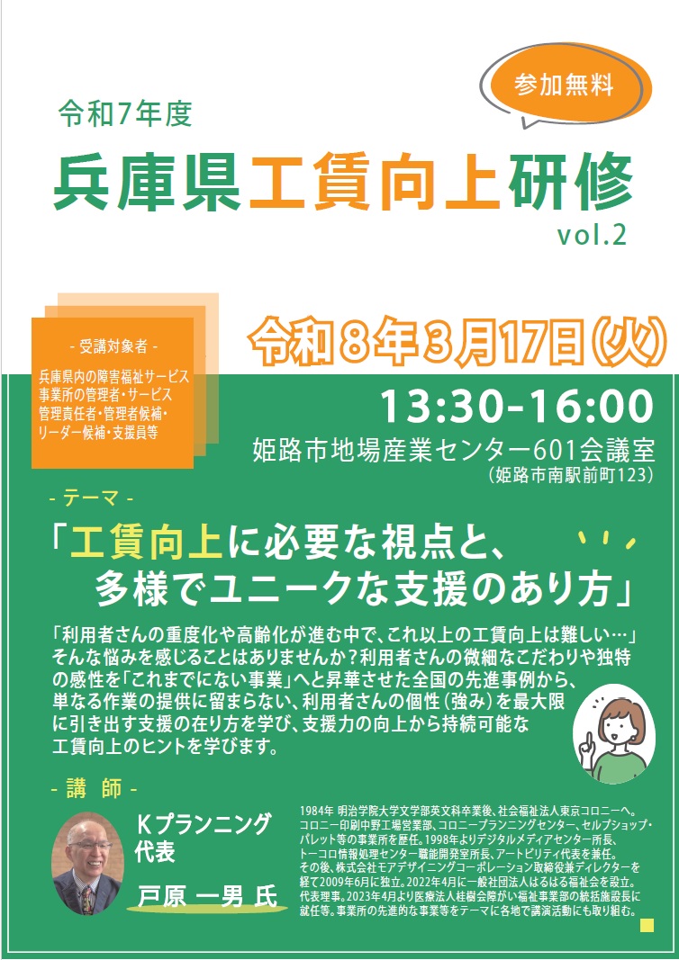 「令和7年度兵庫県工賃向上研修会 vol.2」開催のお知らせ