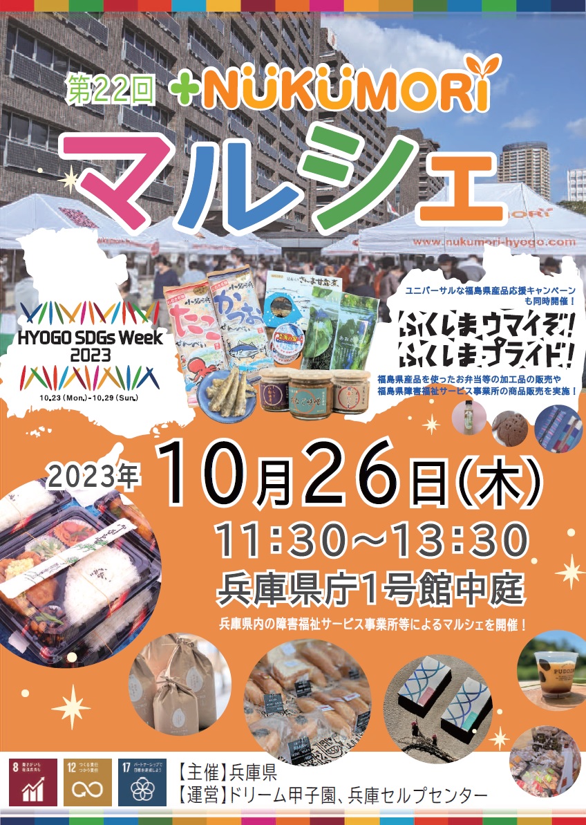 兵庫県庁1号館中庭にて、ひょうごSDGs WEEK「第22回+NUKUMORIマルシェ」を開催いたします。