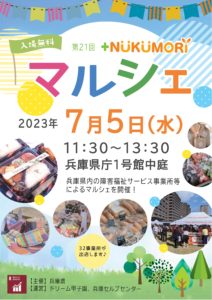 令和5(2023)年10月26日(木)に兵庫県庁1号館中庭で「第22回+NUKUMORIマルシェ」を開催することとなりました。
