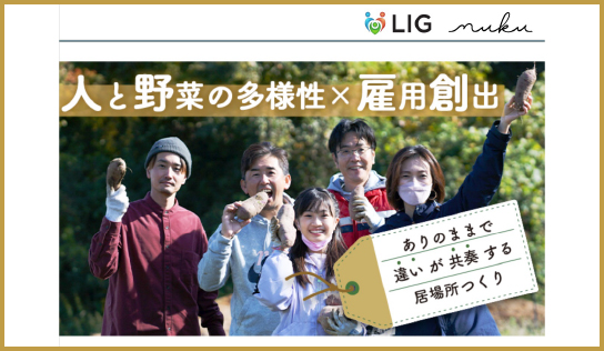 障害児通所支援事業を行うなかで、子ども達の未来の自立を考えた時に好きなことや得意なことを活かせる選択肢がないことや工賃の低さに問題を感じてきた。一方で農家では、農業従事者が減り、耕作放棄地が増加している。双方の課題を同時に解決し、障害のある方がイキイキと働き農業も盛り上げるため、就労継続支援B型事業所を2022年6月に開所。今後、野菜の販売や6次化商品の開発・販売で工賃の向上につなげるだけでなく、人が畑に集まる環境を作り、多世代の多様な人たちが集う地域に開かれた福祉事業所にしていきたい。