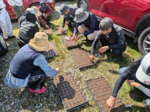 午後:実習「圃場見学、セルトレーを使った様々な野菜の播種、様々な道具を使った除草」