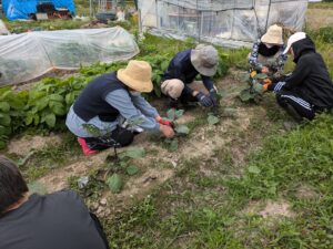 午後:実習「サツマイモの苗取り、植え付け、丹波黒定植等」