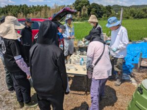 午前:オリエンテーション、自己紹介、講義「お米について、ナスの栽培について」