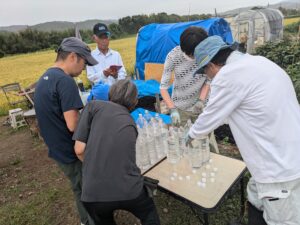 午後:実習「葉面散布液づくり、葉面散布、岩津ネギの定植」
