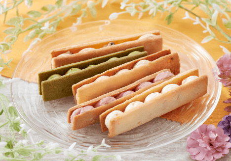 プロのパティシエ監修の下でバタークリームに合うフレーバーを研究し、定番のラムレーズン、ベリー系のフランボワーズ、国産抹茶、変わり種のレモン&紅花、山椒の5種類としました。朝倉山椒や三木市の養鶏場の卵など、兵庫県産の食材を使用しています。