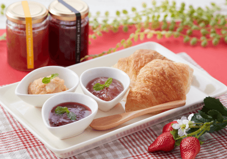 パティスリーアキトの田中シェフの指導で商品化したジャムのセット。まごころ込めて栽培したイチゴを使った「いちごジャム」、地元の牛乳を使用した「ミルクジャム」、兵庫県産いちじくを使用した「いちじくジャム」。贈答品としても活用いただけます。