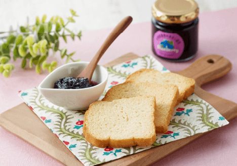 令和2年度より栽培を始めた15種類200本のブルーベリー。収穫後、太子町の「菓子の樹」チーフパティシエ井口シェフ指導の下、砂糖をできるだけ控え、甘さ控えめでさっぱりとしたジャムに仕上げました。ジャムと相性の良いラスクと楽しんでいただける商品にしました。